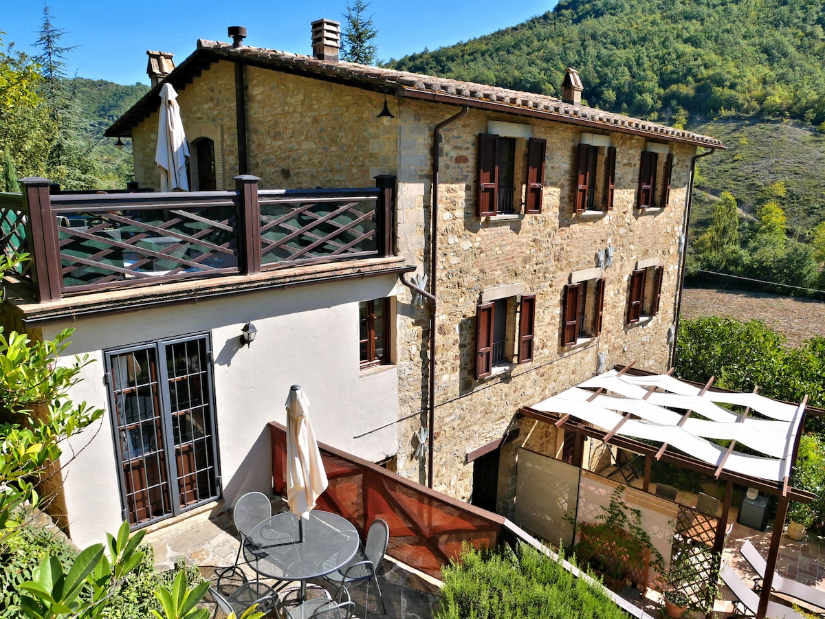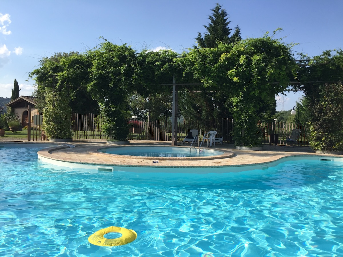 Welcome to our charming apartment in Fattoria Fontenovo in Umbria fresh hills !This cozy retreat at our historic Fontenovo Farm, owned by our family for over 100 years, offers the perfect blend of privacy and tranquility. Some areas of the spacious villa remain unoccupied and others are reserved for your use. During the stay, you'll be the sole occupants, apart from the owners who may occasionally be in another part of the house. Enjoy the lush gardens, private pool, and serene countryside.