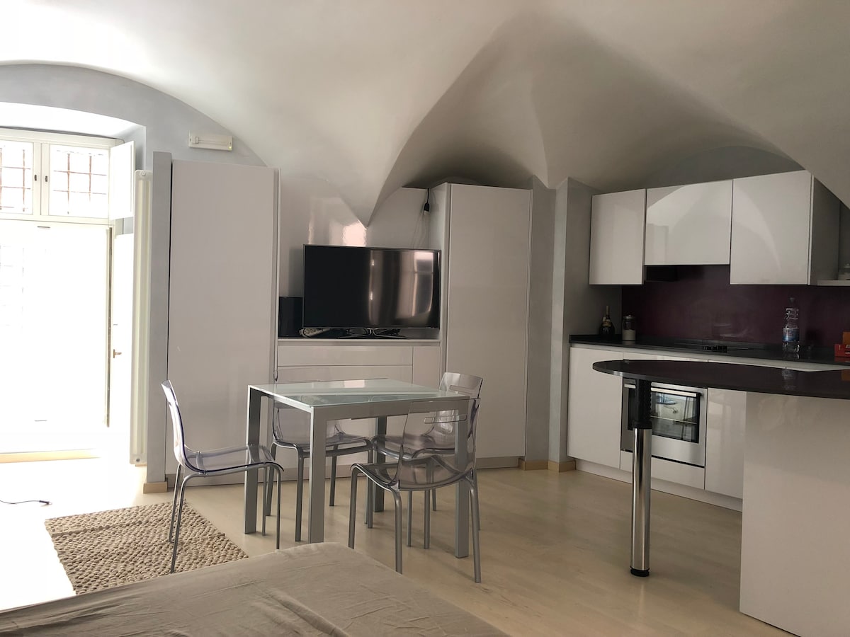 Appartamento in pieno centro nuovo e completo di tutto i comfort, composto da salone con cucina e bagno. l'alloggio è molto comodo per una coppia o per famiglie non numerose. Ci sono 3 posti letto(un letto matrimoniale e un divano letto ad una piazza e mezzo). la cucina è nuova e completa di tutti gli elettrodomestici(frigo, forno,lavastoviglie e macchina per il caffè).Il bagno è provvisto di doccia, bidet e lavatrice.Internet veloce illimitato.