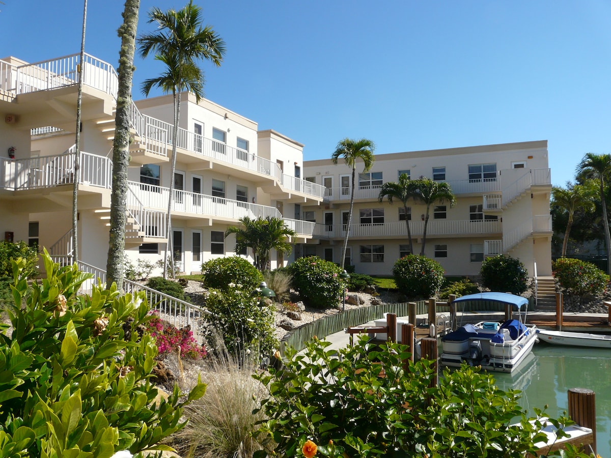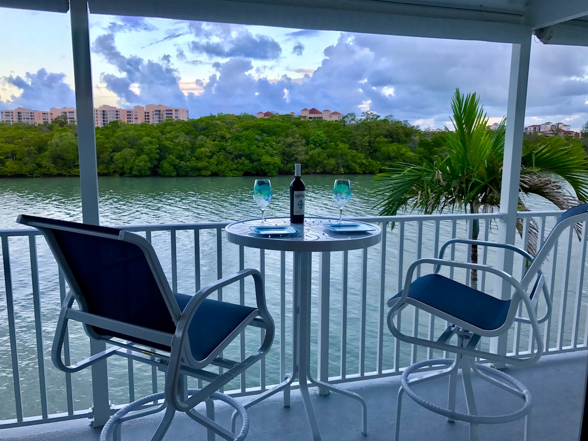 Unique Waterfront Condo & Gorgeous Intercoastal Views, Wildlife, Fishing, Boat Dock. One block from Snook Inn! Adjacent Pool Steps Away from Back Patio. NEWLY REMODELED! Pool & Patio Overlook Beautiful Waterfront, Dolphins, Manatees, Exotic Birds. Main Floor with no steps. If you love water and WILDLIFE, this place is for you! Fishing on the dock-Fishing Poles and Tack Supplied, pull your boat right to the back door. TONS of wildlife. Dock is lit at night, watch the sea life! NON SMOKING UNIT