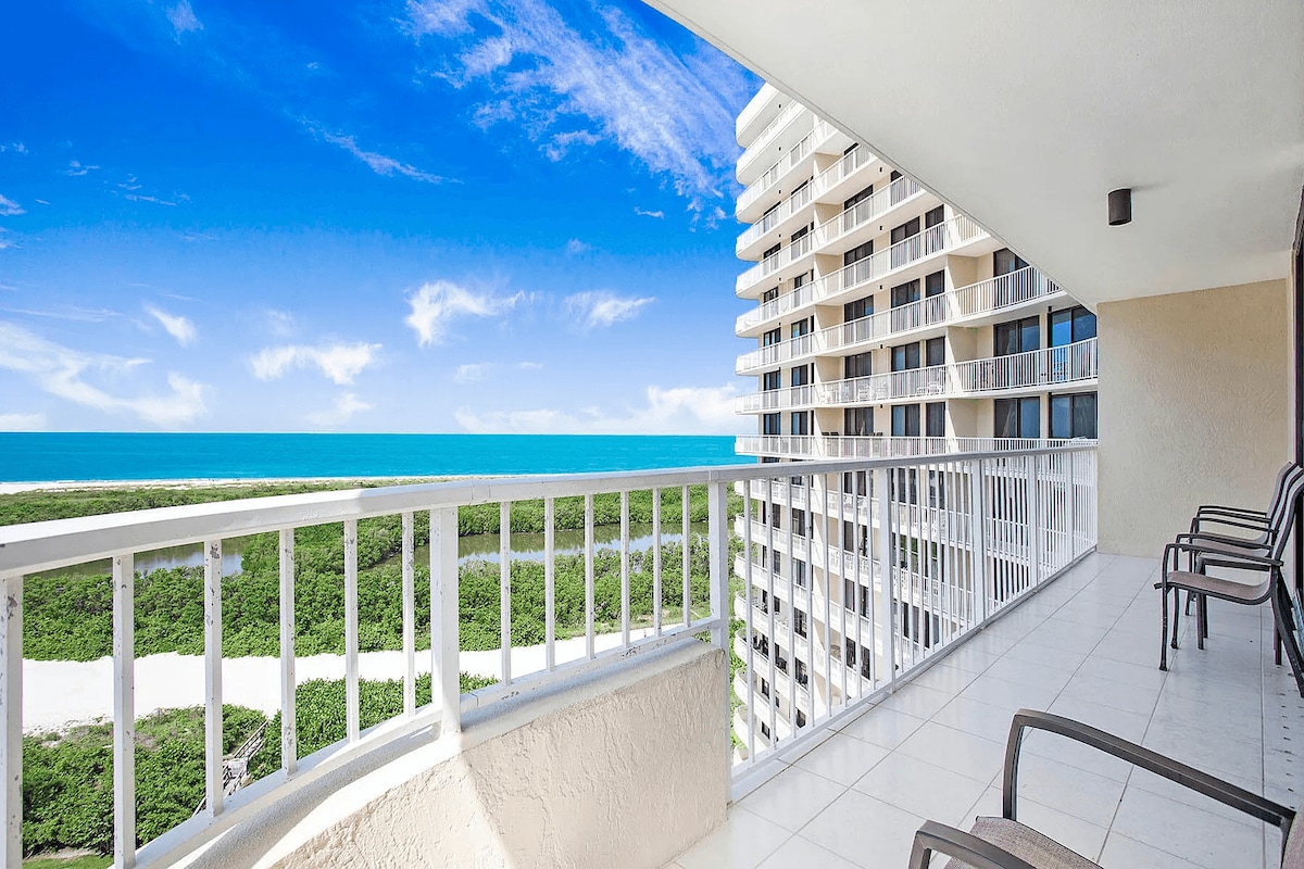 Enjoy our completely renovated, gorgeous 12th floor, 2 bedroom, full beachfront Marco Island getaway. Take in the spectacular views – especially the sunset – from throughout the apartment and from the wrap around balcony. You can enjoy stunning views of the powder white, 5-mile long beach, stretching from Cape Marco to Tigertail and Hideaway Beaches.