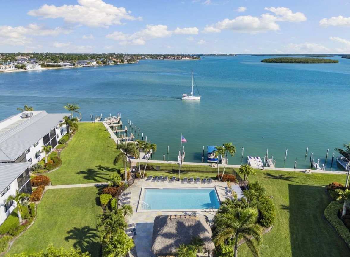Unique Waterfront Condo & Gorgeous Intercoastal Views, Wildlife, Fishing, Boat Dock. 1 block from Snook Inn! Adjacent Pool Steps Away from Patio. NEWLY REMODELED! Pool & 2 Private Patios overlook Beautiful Waterfront, Dolphins, Manatees, Exotic Birds. Main Floor -no steps. If you love water and WILDLIFE, this place is for you! Fishing on the dock-Fishing Poles and Tack Supplied, pull your boat right to the back door. TONS of wildlife. Dock is lit at night, watch the sea life! NON SMOKING UNIT