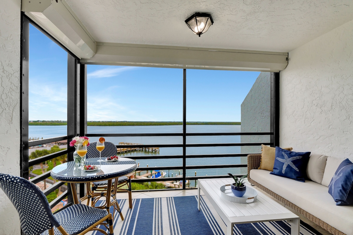 Enjoy our beautifully renovated 2BR, 2BA condo with a view of the Gulf of Mexico. Our unit is comfortable, airy and clean with lots of natural light. We have everything you need to feel at home while enjoying your vacation in paradise. Master suite with king bed. Second bedroom has 1 queen and 1 twin. Spacious living room, screened-in lanai and modern kitchen. A few minute's walk to beach, shopping and fine dining. Beach chairs & umbrellas included.