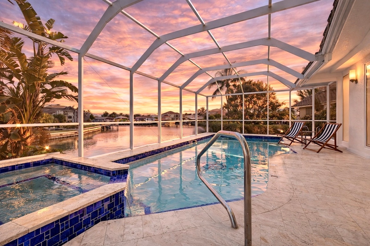 Relax in elegance and stay steps from the beach at our weekly rental vacation home on Marco Island! Walk to Beach (<10 min) Keyless entry Upper floor, screened patio Primary king suite, second queen bed, two air mattresses Fully-stocked with kitchen utensils and appliances WiFi, HDTVs in each room, streaming apps, Xbox 360 Pool, hot tub, grill, tennis Walk to dining, entertainment, shops AirBnB Super Host for 10+ years ★★★★★ over 300+ Reviews