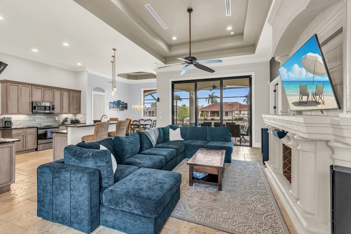 Relax with the whole family at this serene paradise in warm Florida at ‘Island Breeze Haven’ — a luxury canal view home on Marco Island! With its spacious layout, top-notch amenities, and WiFi-friendly workspace, this 4-bed, 3-bath is a perfect paradise escape. We now offer a 6-person electric golf cart available to rent during your stay. It’s a fun way to explore the island. 10 min walk to Marco Island Public Beach Access 7 min drive to Tigertail Beach 45 min drive to Fort Myers (RSW) airport