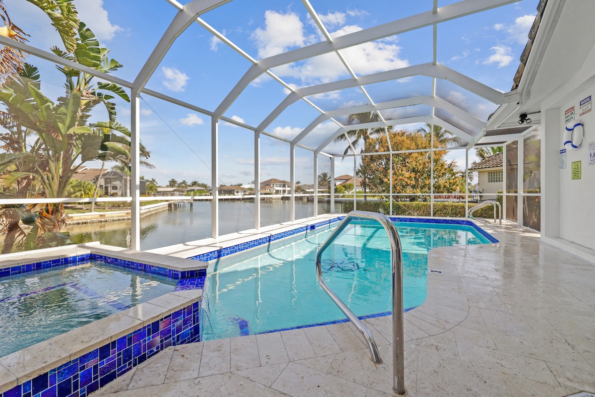 Relax with the whole family at this serene paradise in warm Florida at ‘Island Breeze Haven’ — a luxury canal view home on Marco Island! With its spacious layout, top-notch amenities, and WiFi-friendly workspace, this 4-bed, 3-bath is a perfect paradise escape. We now offer a 6-person electric golf cart available to rent during your stay. It’s a fun way to explore the island. 10 min walk to Marco Island Public Beach Access 7 min drive to Tigertail Beach 45 min drive to Fort Myers (RSW) airport