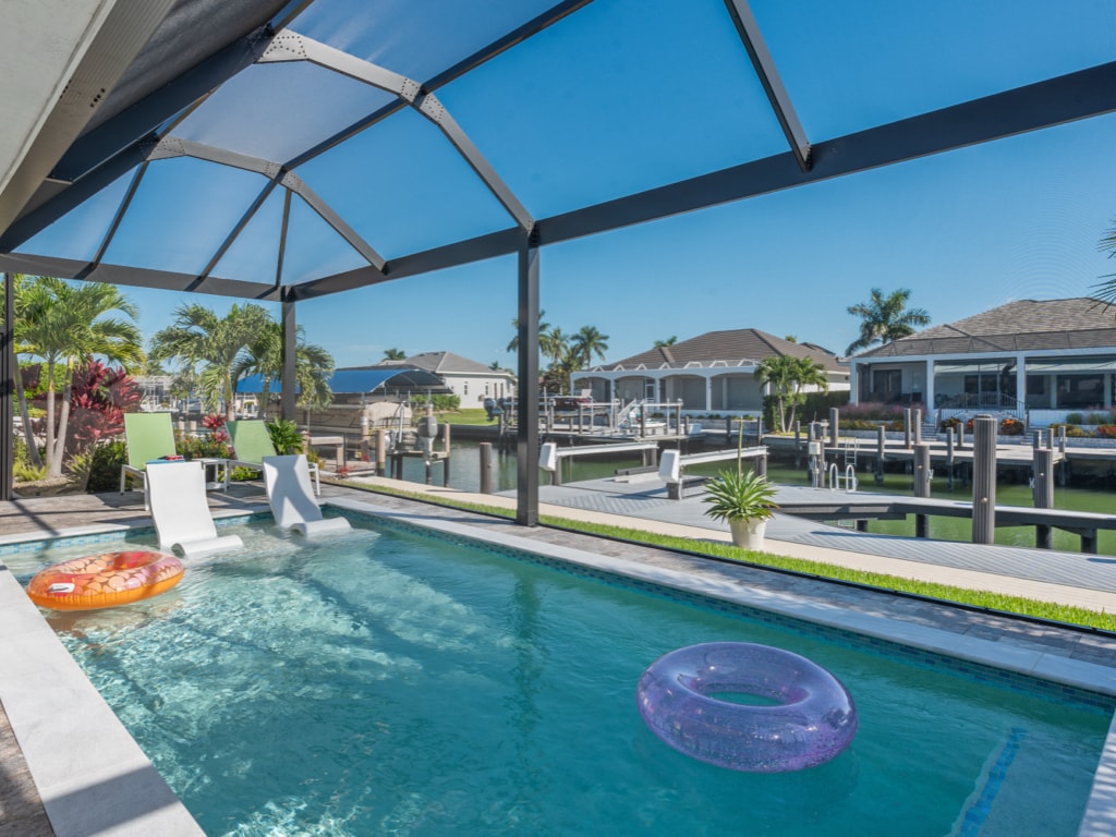 A stylish, brand new island home perfect for vacationing with your own private heated pool. The West Hilo Home sleeps 8 and is within 3 blocks of local restaurants that feature dining on the water in sunny Isles of Capri. Enjoy laid back island life- including kayaking, boating, fishing and jet skiing just minutes away. Neighboring Marco Island is less than 10 minutes by car and famous for their powder white sand beaches. Or relax at home grilling by the pool while the sun sets.