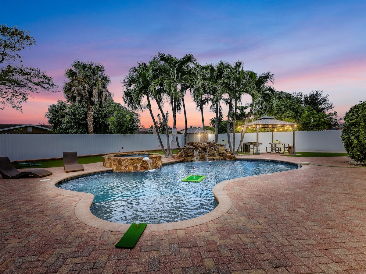 私人温水泳池|游乐设施|靠近海滩!