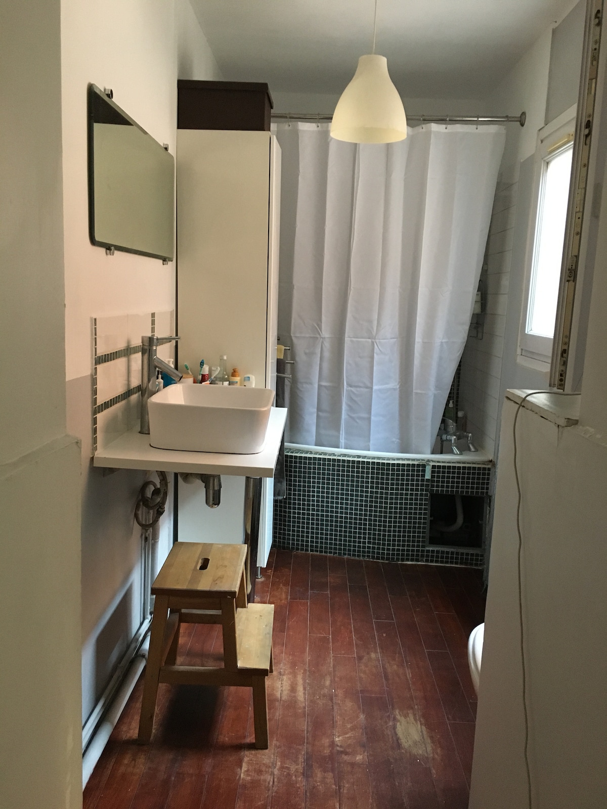 Cet hébergement se situe dans notre maison, au centre ville, 5 min à pied de la Piscine, 20 mètres ENPJJ et 100 mètres IFORT, 5 min du métro Ch de Gaulle (direct Lille 20 min) et du tram (Alfred Mongy). Dans une maison au cachet préservé, vous aurez tout un étage pour vous (35 m2) avec salle de bains et toilettes (privées), un lit très confortable 160cm, un bureau, et un coin repas (micro-ondes et petit frigo mais pas de plaque ni d'évier (évier dans la sdb). Vous serez indépendants et au calme.