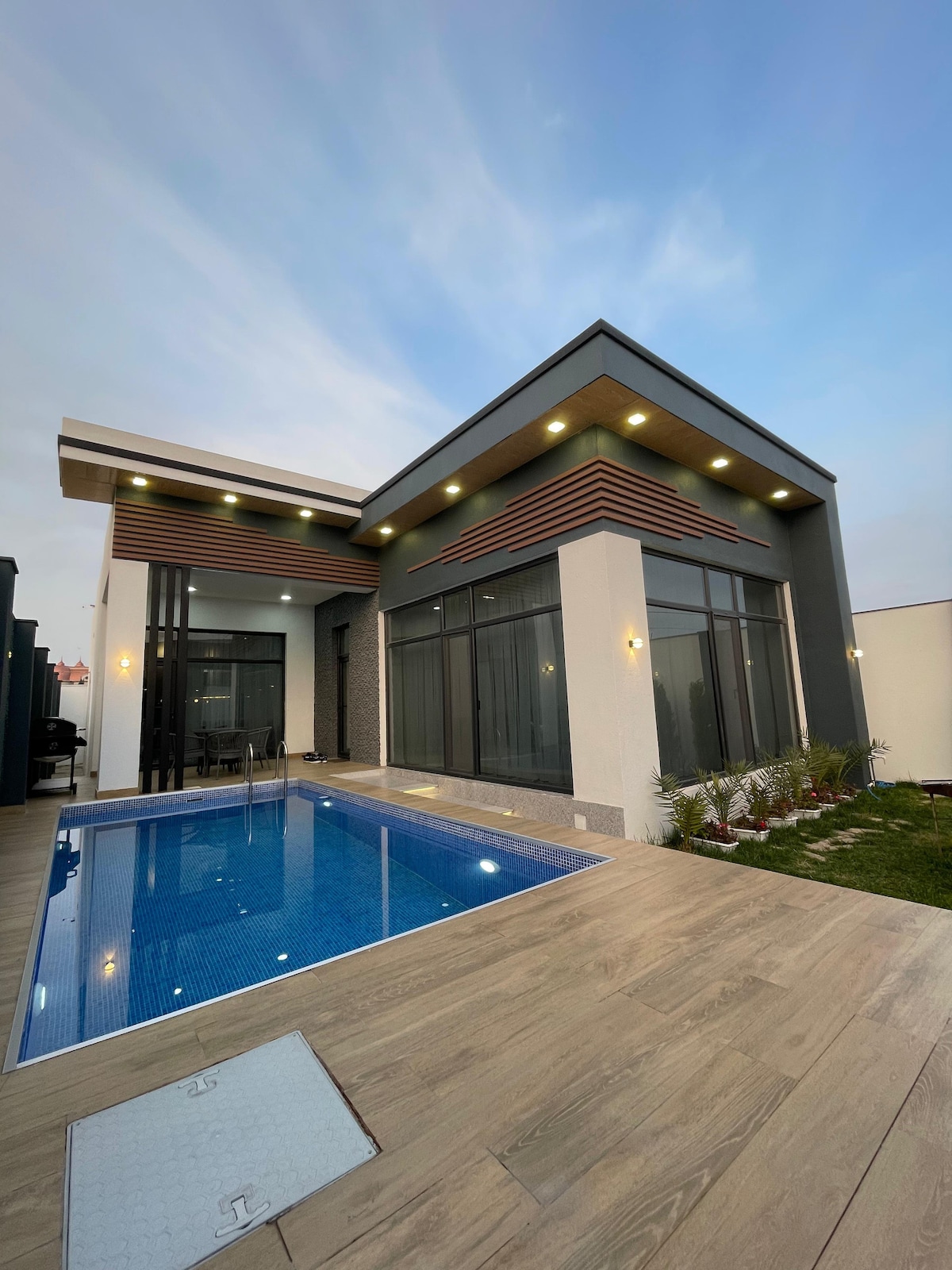 Luxury new villa in a great location, very close to the beach, restaurants, cafes & beach clubs. Located on the main road, 24/7 supermarket & EV charging port across. Panoramic Caspian Sea view. Family-friendly, quiet & clean. Parking for 2 cars. Enjoy outdoor games (dart, frisbee, badminton), indoor games (TV, board games). Fully equipped kitchen & BBQ. Welcome treats: coffee, oranges, charcoal, wine. Next Beauty Salon, our wall-neighbour, offers ladies-only hammam, sauna, gym, beauty services.