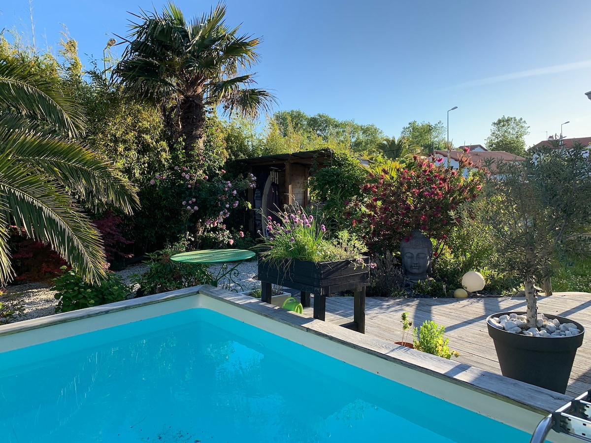 ATTENTION : La capacité de la Villa est fixée à 6 ADULTES + 4 ENFANTS MAXIMUM. La Villa est située sur une vaste propriété de 15000m2, bordée par un ruisseau en lisière de forêt. La piscine privée de 12m x 4m, sécurisée par un volet roulant électrique, est entourée d'une grande terrasse bois équipée de salons de jardin et transats. Entièrement climatisée, équipée et décorée avec attention, la Villa offre un confort moderne et élégant qui ravira les familles ou les couples d'amis avec enfants.