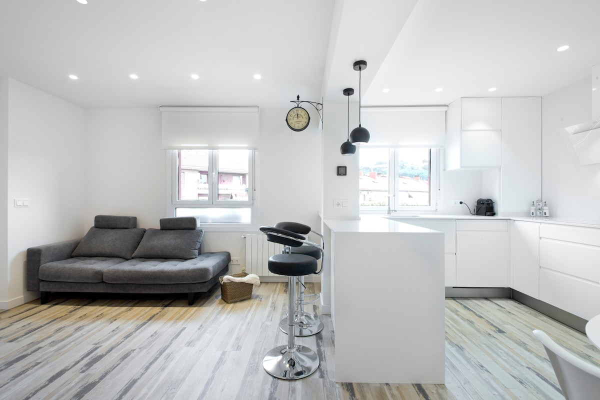 Este apartamento de estilo moderno se encuentra dentro de un típico caserío vasco con más de 500 años de antigüedad. Ubicado concretamente en la localidad guipuzcoana del barrio de Ergoyen, no muy lejos de San Sebastián (15Km), a los pies del parque natural de Aiako Harria y a orillas del río Oiartzun. La ubicación permite visitar los pueblos costeros de alrededor, hacer senderismo, y runnig por la ruta de Arditurri de 20Km que pasa junto por la casa.