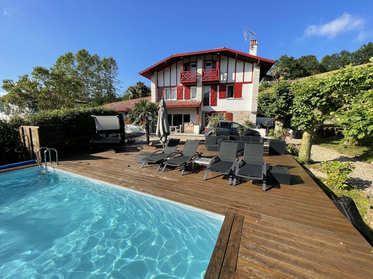 Our house would be perfect for nice family-oriented holidays in the Basque country. We have an en-suite master bedroom downstairs ( walk-in closet, bathroom), and a living room with a kitchen. There is a large terrace outside with summer kitchen (plancha) and a large garden ( ping-pong table for children, swimming-pool, deck chairs...). There are also 2 nice bedrooms upstairs with a panoramic view of the local summit (La Rhune), as well as a bathroom with a toilet.