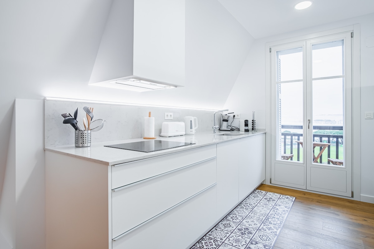 We offer two luxury apartments in this beautiful city. ApARTment La Concha Suite y ApARTment La Concha Studio. Around 120m2, bright, comfortable and modern. The kitchen, dining room and living room are a large space with stunning views to the sea. The kitchen is perfect for cooking and you won't miss anything. The two bedrooms are double with their respective bathrooms. The main one has a dressing room. It has an office to work, totally independent if you want to come on business. WIFI.