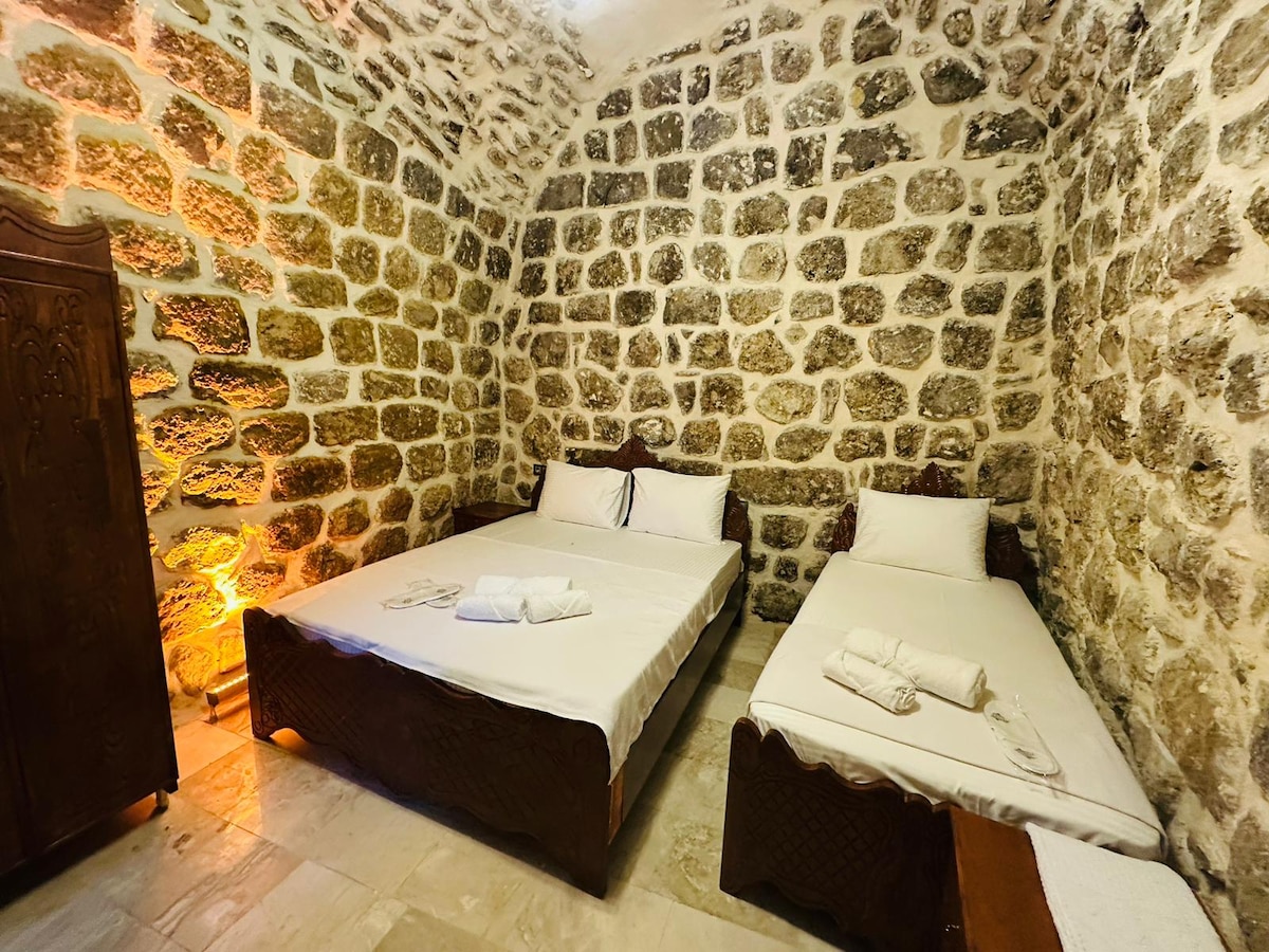 Mardin’in büyüleyici tarihi dokusunu modern konforla buluşturan odamızda, taş duvarların mistik atmosferinde unutulmaz bir konaklama deneyimi sizi bekliyor. Tesisimizde konaklayan misafirlerimize, konforlu ve keyifli bir konaklama deneyimi sunmanın yanı sıra, her sabah özenle hazırlanmış kahvaltı servisini de oda fiyatına dahil olarak sunmaktayız. Güne taptaze ürünlerle dolu, doyurucu bir kahvaltıyla başlamanız için sizleri tesisimize bekliyoruz.