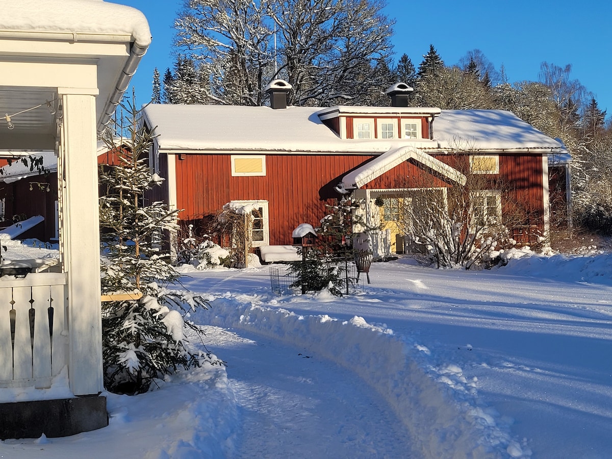 You like to glance out of the window, over a wild meadow leading to a lake? While having some buttered toast and your freshly brewed first coffee of the day? I guess you'll like it here. The little red house is about 90m away from of the Spannsjö, on which's shores my farm is the only real estate.Your little red house has everything you need, no matter the season: sleeping room with 4beds, living room, bathroom, fully functional kitchen and your own washing machine.Wifi is in the house.