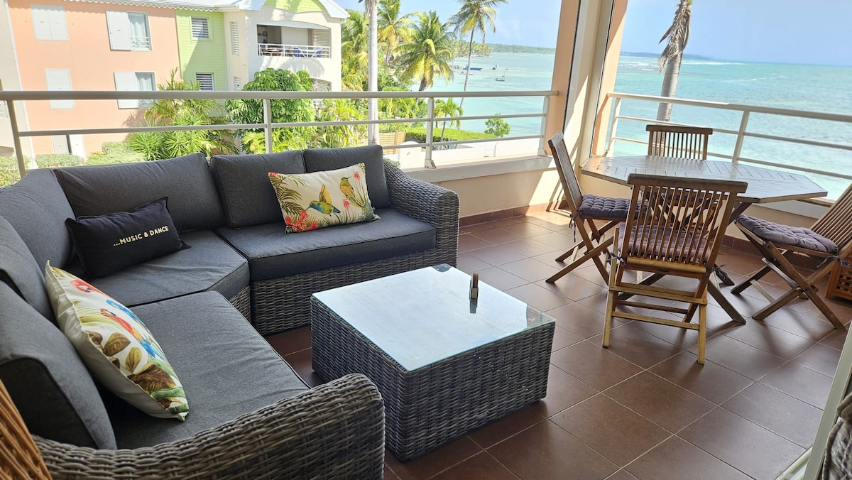 Bel appartement vue pleine mer s’offrant sur l’Îlet du Gosier, Marie-Galante, la Dominique, les Saintes et la Soufrière. Appartement 2 pièces de 50 m2 entièrement rénové avec soins et jouissant d'un emplacement exceptionnel à Le Gosier, idéal pour visiter tout l'archipel. Superbe terrasse vue mer. Situé en plein centre de Gosier bénéficiant de toutes les commodités du bourg mais sans les nuisances sonores. Petite résidence sécurisée en front de mer avec emplacements de parking.