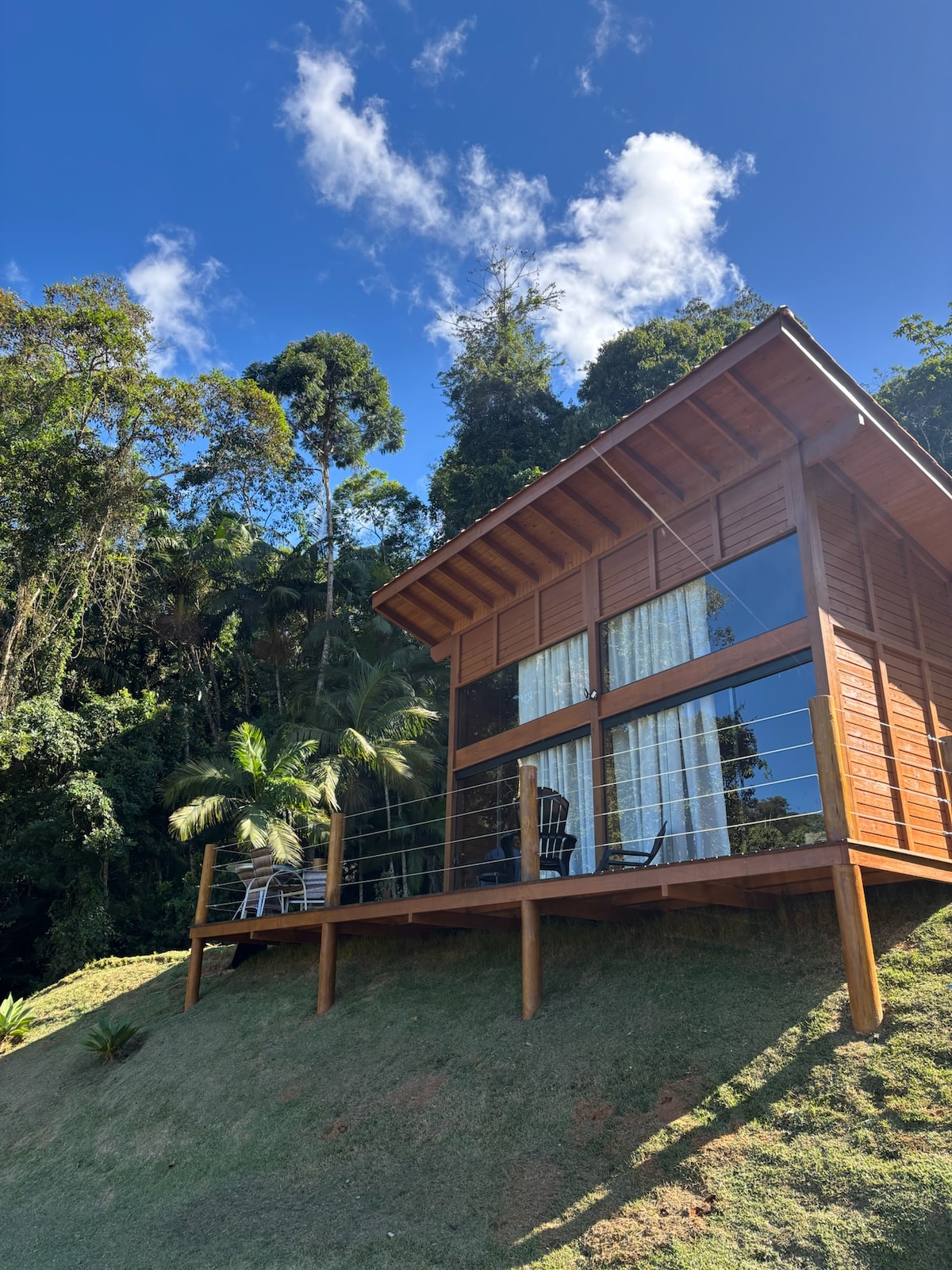Cabana terra nossa. Relaxe neste espaço calmo e cheio de estilo. Somos uma cabana localizada nas montanhas capixabas, é um lugar para você criar memórias e desfrutar de momentos únicos com conforto e toda tranquilidade que a natureza oferece. Aqui você pode ter experiências que vai desde um banho relaxante em nossa banheira com vista para natureza até um bom vinho em nossa lareira externa. Nossa cabana tem cozinha equipada, quarto amplo, banheiro, deck e área externa