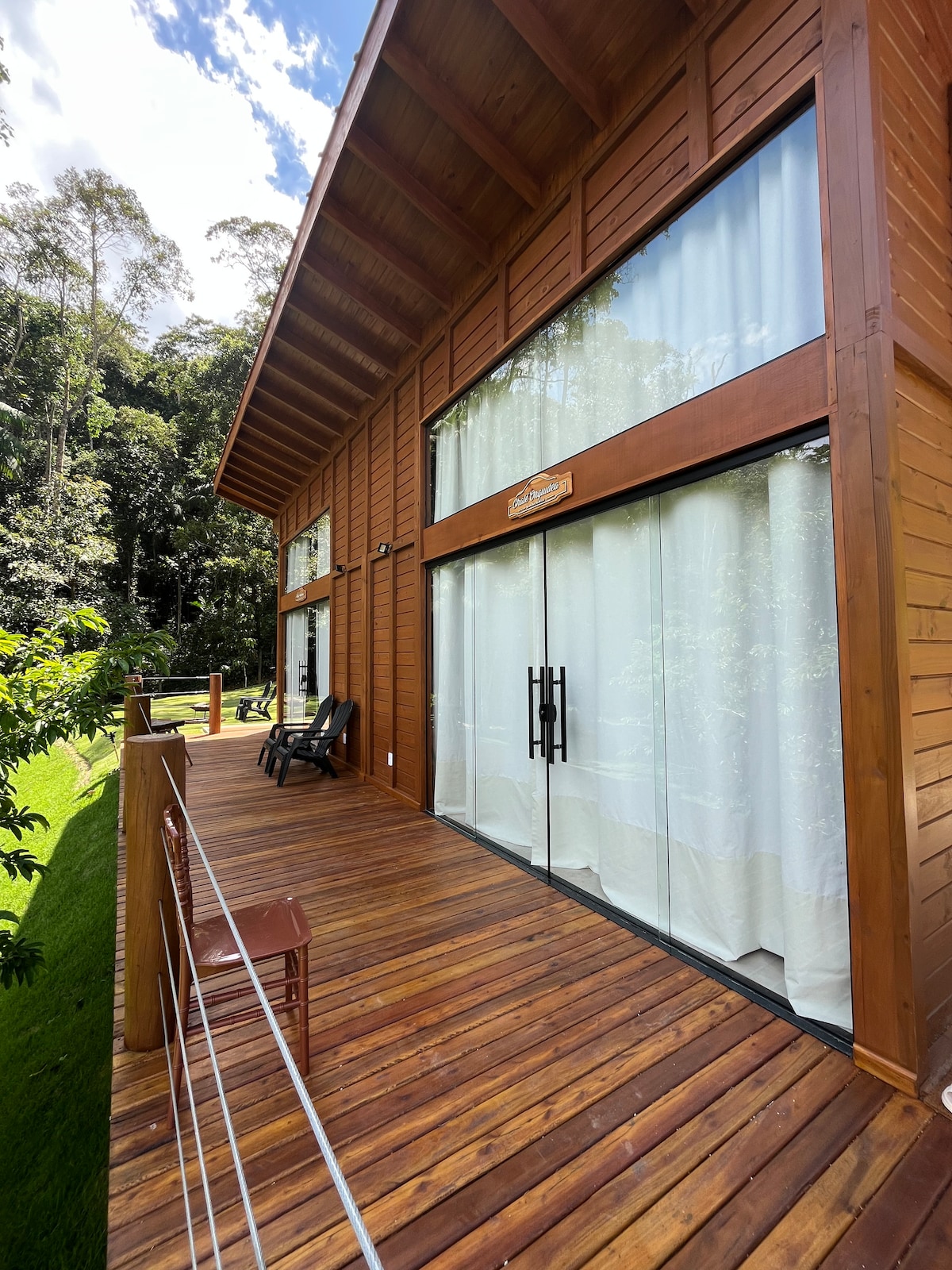 Chalé amplo, com pé-direito alto e janelas panorâmicas que deixam a luz natural entrar e revelam a paisagem verde ao redor. O interior combina pedra, madeira e vidro em um design acolhedor e elegante. Perfeito para até quatro pessoas, em busca de conforto, privacidade e contato com a natureza, sem abrir mão do charme e da sofisticação.