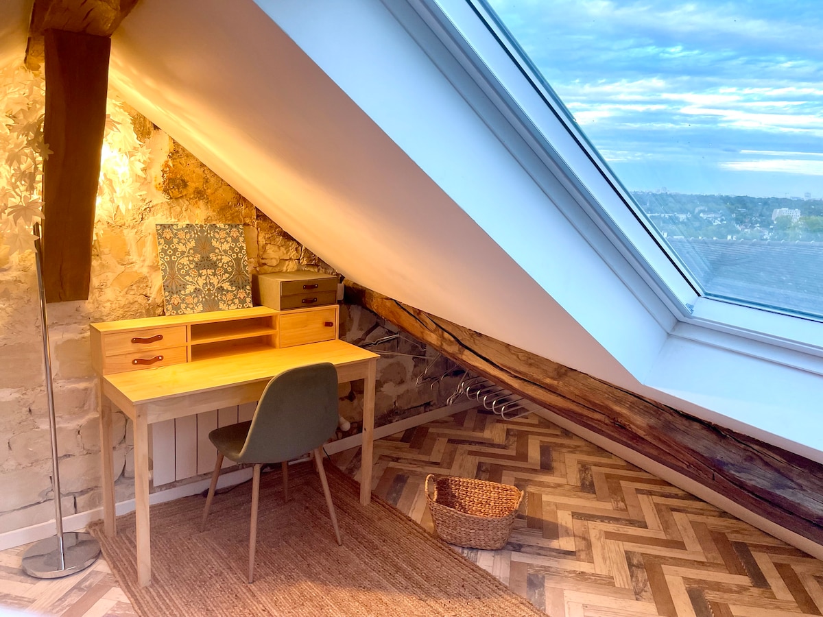 Charming duplex with view of the castle of St-Germain-en-Laye from the living room. Ideally located in the city center: amenities (food shops, restaurants, pharmacies, clothing store, cinema, etc.) and transport (bus, RER, Taxi) on foot. 2 minutes from the castle and its pretty park. Ideally located to go to Paris (30 minutes by car or RER A), Versailles and its castle (15 mins by car or bus), in Giverny (30 mins by car via A13) Elevator Parking on request