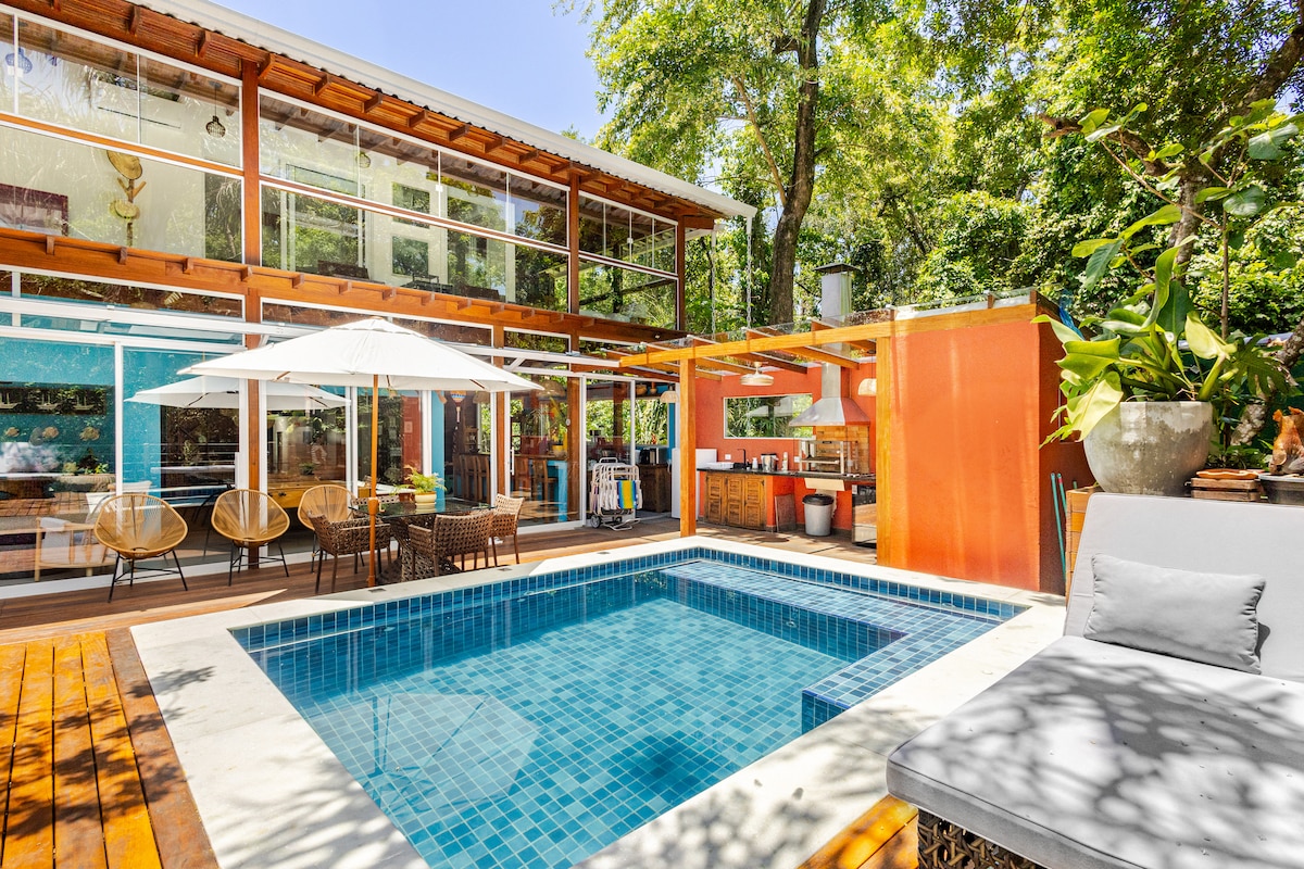 位于Maresias的Av da Praia的带有加热游泳池的房子