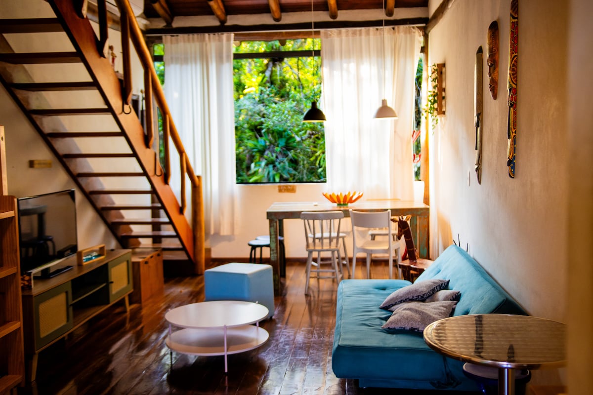 A confortable chalet in front of the beach of Maresias, among a conserved reservation of the Atlantic rainforest, and including pools, hot tubs, BBQ and gym. My loft’s great for families, couples and groups (it can settle up to 07 people). It is fully furnished and the condo also offers a sunshade + two chairs for you to enjoy the beach. Come and check it out for yourself!