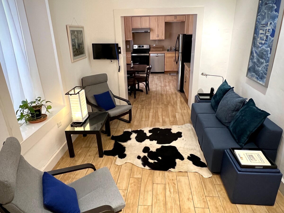 Kathryn's Corner Cottage is located in a popular residential area in Alpine called Carpenter addition. It is beautifully landscaped and features ample parking. 2BR/1BA (master bedroom -king 400 series Serta adjustable bed; 2nd bedroom has a queen size adjustable bed) each with their own smart tvs. The home has a large dining room for meals and gatherings and a sunroom with a gas log fireplace is located at the back of the home perfect for reading, bird watching, or just relaxing.