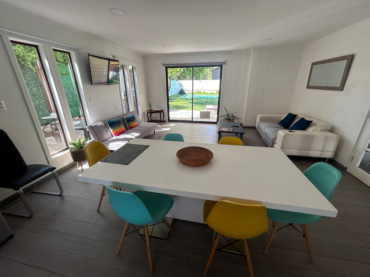 Ideal para disfrutar de un ambiente familiar, en un vecindario tranquilo. • No esta permitido realizar fiestas • Marcar la cantidad exacta de personas al reservar • El uso y calefacción de la tinaja tiene un costo adicional, debido a que es algo opcional • Visitas deben ser consultadas previamente y dependiendo del caso puede que haya un cobro adicional • Aceptamos hasta 2 mascotas pequeñas que se porten bien Favor leer la descripción completa para mas info, consulte ante dudas!!