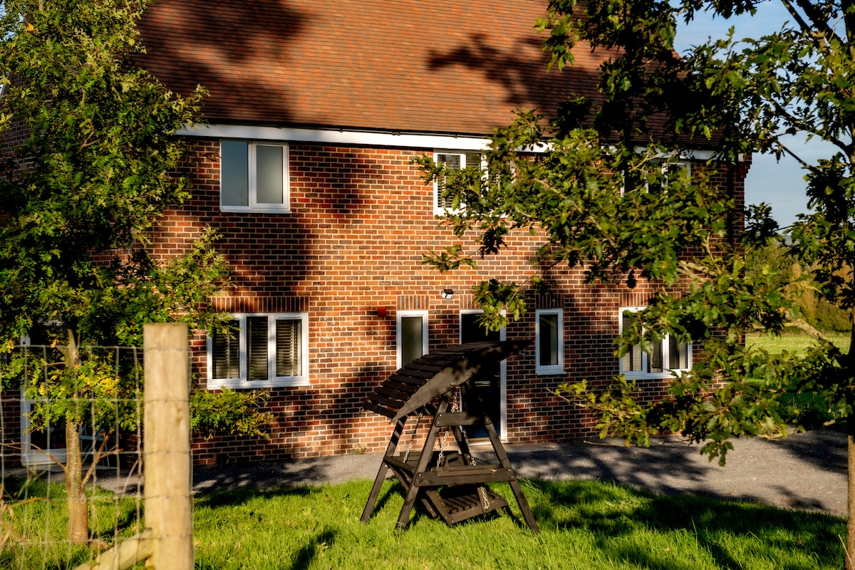 Get back in touch with nature at this luxury cabin nestled in a quiet hamlet. Find tranquility on the terrace surrounded by breathtaking views, or lounge amid thoughtful decor and chic modern finishes in the exposed oak beam interior. Blue Vale is brand new as of June 2018! We helped to design this green oak framed building and have been involved in the whole process of building it, doing much of it ourselves. For our colour scheme we have used different shades of blue throughout, playing on the name of Blue Vale. The furnishing and finishing touches are of a high standard to help promote a comfortable and luxurious finish. There is an eclectic style combining modern country with industrial finishes. Luxury, high thread cotton bedding and towels, large flat screen smart tv's and luxury Neals Yard toiletries help to give the top-end finishing touches we would appreciate if we stayed away from home. Blue Vale is completely self contained but sits in the grounds of our family home. The decked outdoor living space is screened by trellis on the garden side with fields on the other. You would be very welcome to walk around our garden. We can be as interactive as you wish. With living in the same grounds we are close at hand if needed. We will welcome you when you arrive but will be respectful of your privacy. The glorious Blackmore Vale landscape is a tapestry of farmed green fields with a sprinkling of English villages, of which Sandley is one. Walk out (or cycle, using our available bikes) onto country lanes and venture along a web of footpaths to discover this unspoilt part of Dorset. Visit Stourhead, stroll around the ancient towns of Sherborne or Shaftesbury or discover the beautiful Jurassic coast. Visit Longleat safari park, Haynes Motor Museum, Monkey world & Yeovilton Air Museum. Sandley is a quiet hamlet with the neighbouring village of Buckhorn Weston just a mile away. The Stapleton Arms pub can be found here. We are 10 minutes away from the towns of Gillingham and Wincanton where various supermarkets, shops and services are. There is a train station in Gillingham which has a direct route to London in less than 2 hours. The larger cities of Bath and Salisbury are less than an hours drive and it takes around an hour to drive to the beautiful Jurassic coastline. The historic towns of Shaftesbury and Sherborne are only 15 and 20 minutes away respectively. The quiet rural roads and bridleways of the Blackmore Vale are excellent for cycling and walking. Blue Vale is in the grounds of our family home. There is a one- bedroomed B&B facility on the ground floor of our home.