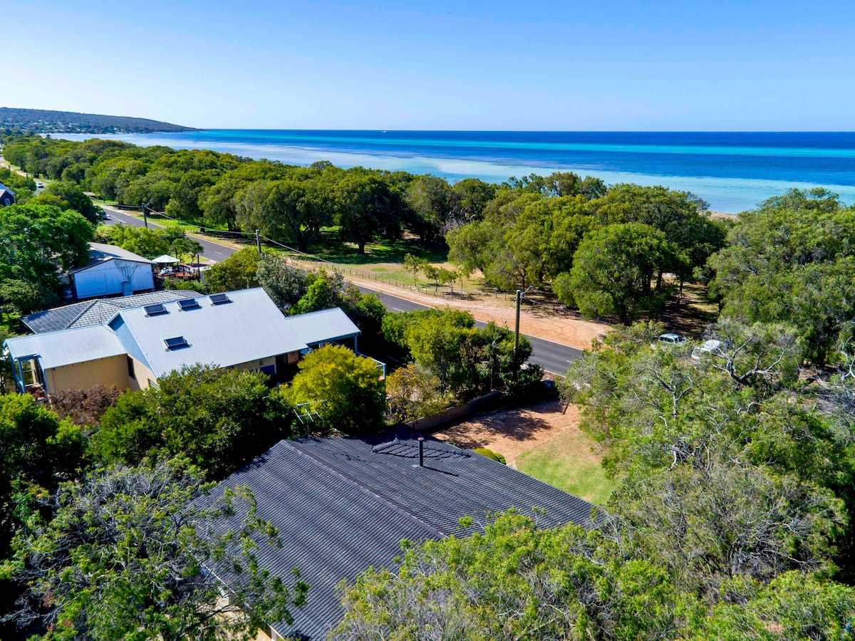 Enjoy this stunning, spacious 4brm beachfront home whilst soaking up the Geographe Bay ocean views. Watch the sunrise and dolphins from the expansive front balcony in the mornings and absorb the spectacular sunsets in the evenings. Kids can entertain themselves quite happily in the Games room equipped with numerous activities to keep them busy. If you are needing a 'Happy Place' to escape too, look no further.