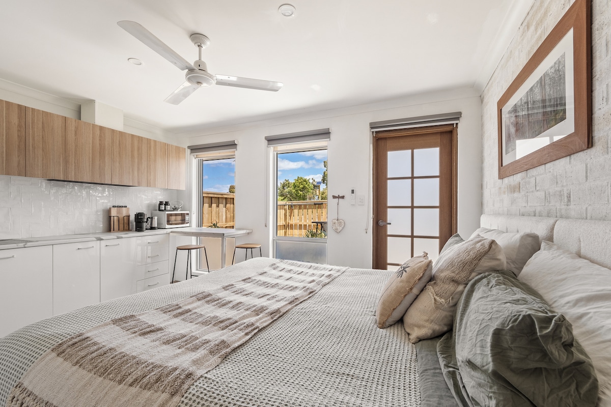 Relax & Unwind at Rapids Retreat – Your Private Studio in Margaret River Welcome to Rapids Retreat, a stylish and self-contained studio located in the peaceful Rapids Landing estate. Just a 2-minute drive or a scenic 15–20 minute walk (with a footpath all the way) brings you to the heart of Margaret River township, where you’ll find fantastic cafés, restaurants, and shops. Plus, you're only 10 minutes from stunning beaches, world-class wineries, and breathtaking nature trails.