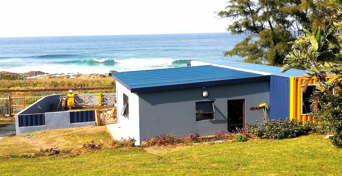 Blue Space Beach House & Beach Shack, same property on the amazing south coast of KZN. The Beach House: A 12m shipping container converted into a blue and yellow chilled out, relaxed, comfortable beach house with 2 en-suite bedrooms, kitchen and lounge, 2 french doors opening onto the patio with a 180⁰ ocean view, where you can chill in the hammock, view the Dolphins, Whales and amazing sun rises. The wild beach with natural rock pools is a 8min walk away. Come and experience it for yourself.