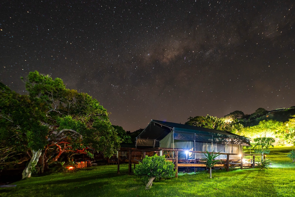 Welcome to our bit of paradise on the Kwazulu Natal south coast. Situated in the village of Trafalgar on the border of the Impinyati Nature Reserve. A mere four minute walk to a pristine and unspoiled beach. An exclusive and upmarket tented camp for those who enjoy the outdoors. Great for nature lovers who love birding and long walks on the beach. We pride ourselves on comfort so we have very comfortable beds and great quality linen.