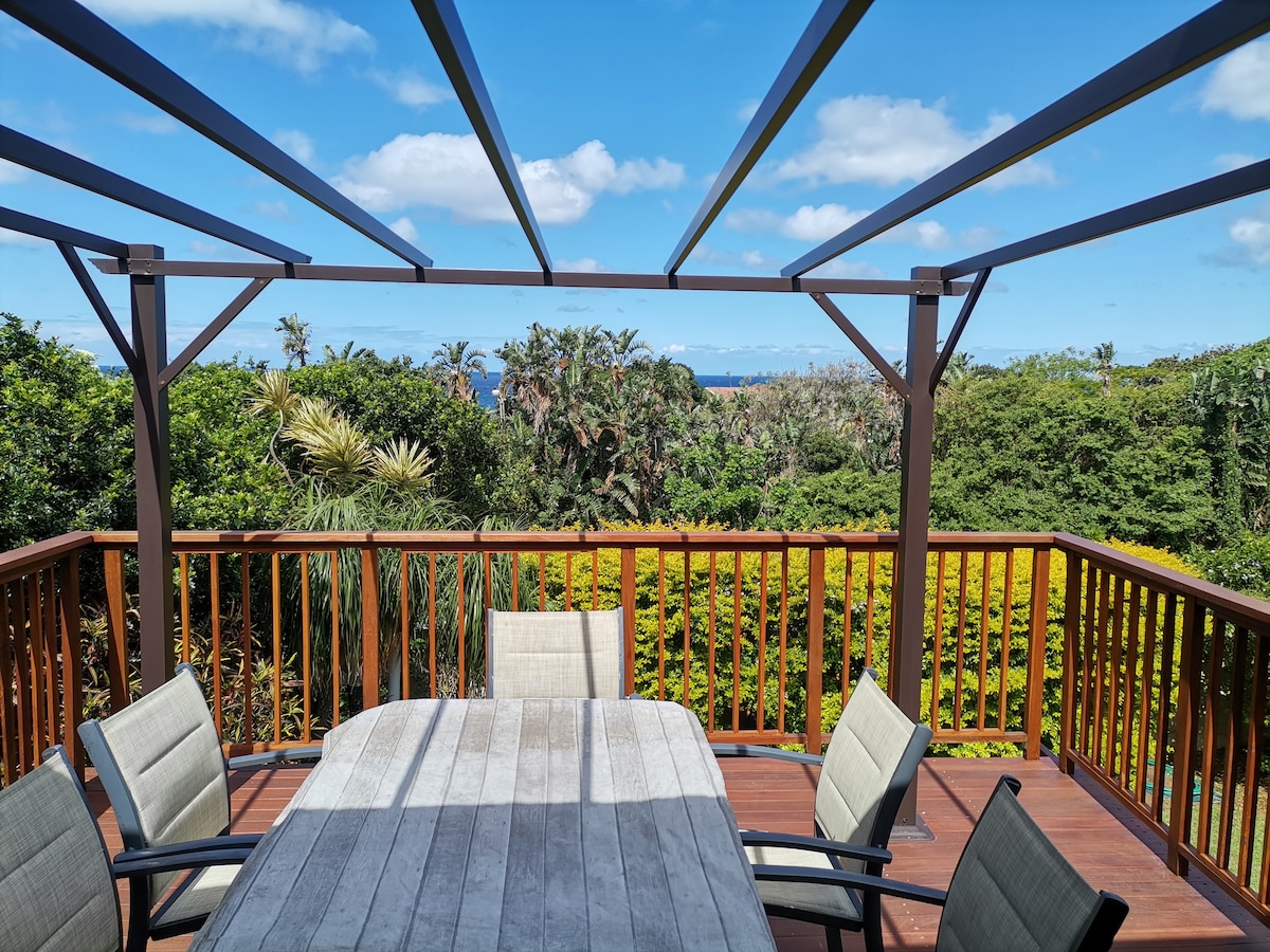Delightful, comfortable family holiday 'home from home' with 180° views of the coastline. Relax on the large patio with it's private jacuzzi and built-in braai or wander down to the communal pool. It's a 5 minute walk from Southbroom's beautiful Main Beach with it's restaurant, lifeguards, surf school and pool. This is a golfer's paradise, Southbroom GC is up the road and magnificent San Lameer a 10 minute drive away. There are Nature Trails and wonderful fishing spots, something for everyone!
