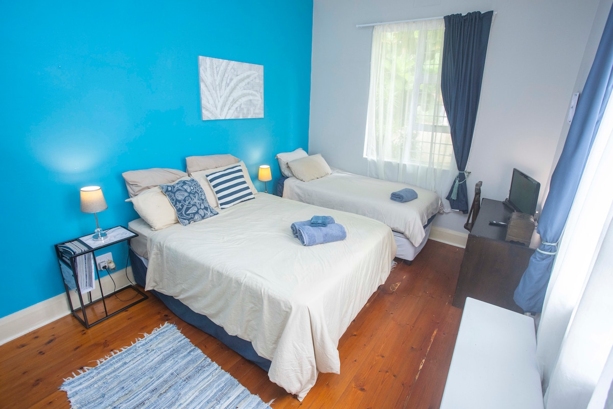 Bring the whole family to this great place with lots of room. This is the ideal holiday for a multi generational family. Fully kitted with an inverter and solar panels, as well as 3 x 5,000 litre jojo tanks filled with council water, you will never be without electricity or water. We have a beautiful swimming pool with sea views for days. Ramsgate main blue flag beach & Waffle House are just a 1km walk, taking the stone steps at the end of our street. Complimentary cleaning twice weekly.