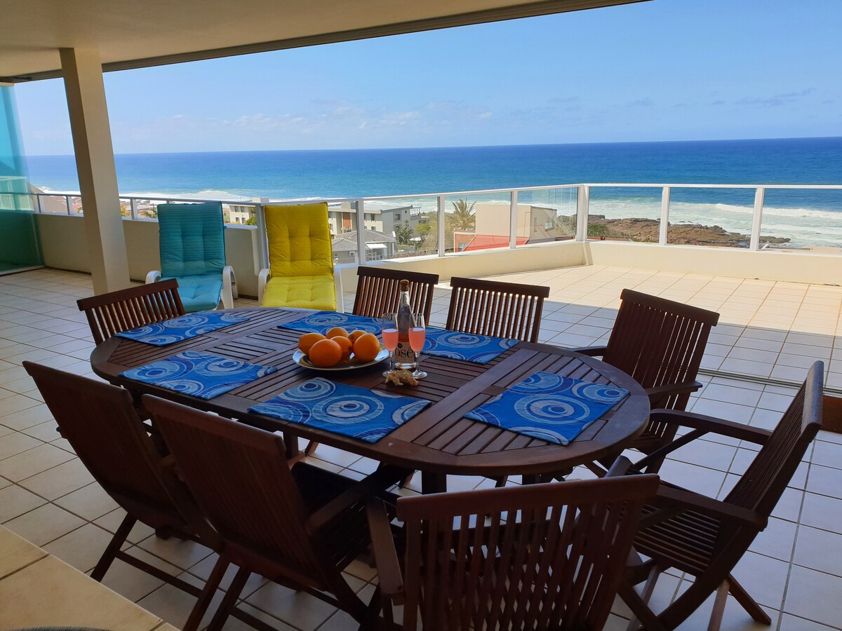 This spacious Penthouse with incredible 180 degrees sea views from its spacious covered patio is perfect for sipping sundowners and preparing meals on the gas braai. The apartment is only a short 5 minute walk to the very popular blue flag Lucien beach as well as convenient shops and restaurants. The unit comes with a fully fitted kitchen, 2 bathrooms and 3 bedrooms. The large outdoor entertainment patio is furnished with loungers and a family dining area. All 3 bedrooms are air-conditioned.
