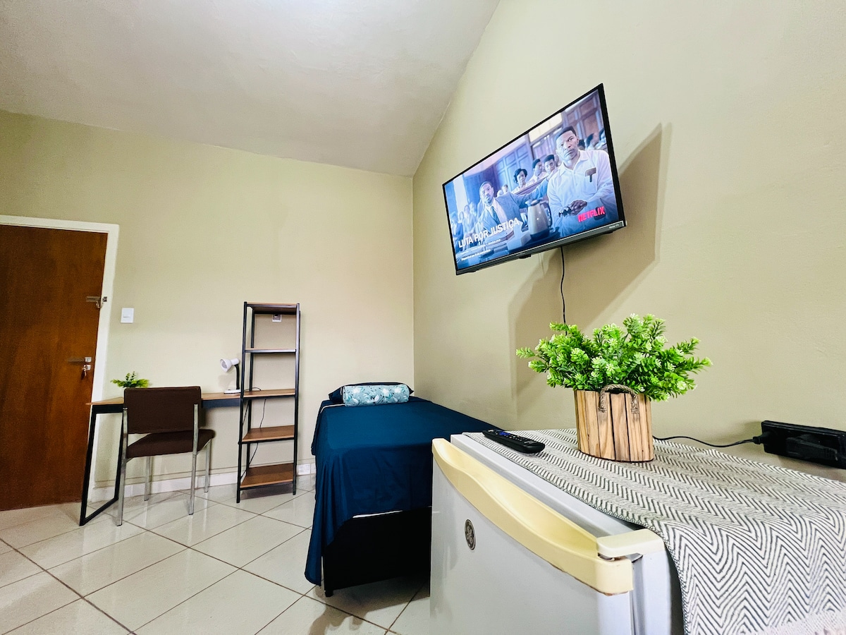 Studio muito bem localizado próximo da PUCC, UNICAMP, Hospital das Clínicas, Shopping Dom Pedro e Hospital Madre Theodora. Á 300 metros do studio tem um mercadinho 24 horas, chama OXXO! A suíte conta com cama de CASAL, ventilador, microondas, frigobar, fogão elétrico, bancada e cadeira perfeita para trabalhar ou estudar, guarda-roupas e vaga de garagem!! Além disso a suíte conta com acesso fácil e privativo. Possui Wi-Fi!