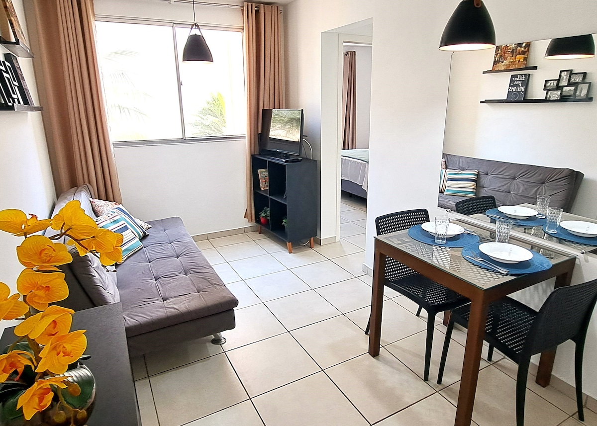 Nesse apto você estará confortavelmente instalado, pode estar certo. Ele oferece tudo o que você precisa para o seu dia a dia - Mesa de trabalho, Internet VIVO FIBRA de 240 Mb, TV Smart de 32', janela imensa com vista sensacional, roupas de cama e banho novas e macias, cozinha equipada e muito mais. A lavanderia é self-service, portaria 24h e garagem para carros pequenos e médios. Será um prazer hospedar você!
