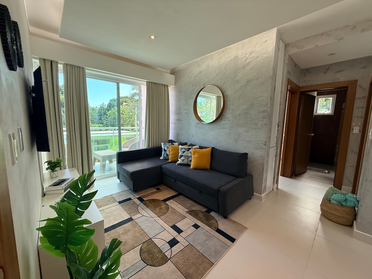 Aroma del Mar, un espacio moderno, cálido y cuidadosamente decorado para que te sientas como en casa desde el primer momento. Este acogedor apartamento está ubicado a pocos minutos de la playa y ha sido diseñado para ofrecerte una estadía cómoda, funcional y con ese toque tropical que tanto gusta. Relájate en una sala luminosa con detalles artísticos y mobiliario cómodo, cocina equipada con barra, y disfruta de una habitación con cama queen, una vibra relajante que invita al descanso.