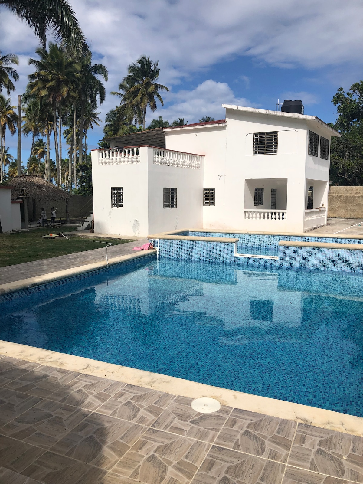 This villa faces the beautiful beach Cayenas. The villa is 10 minutes away from Nagua (Maria Trinidad Sanchez), 30 min from Las Terrenas and 1hr 45min from main airport Las Americas International Airport (SDQ) This villa is built in a modern tropical style that offers plenty of space to enjoy panoramic beach view. Please note that there is another villa; however this villa only shares backyard comun area, BBQ and picuzzi. The other villa can be booked separately