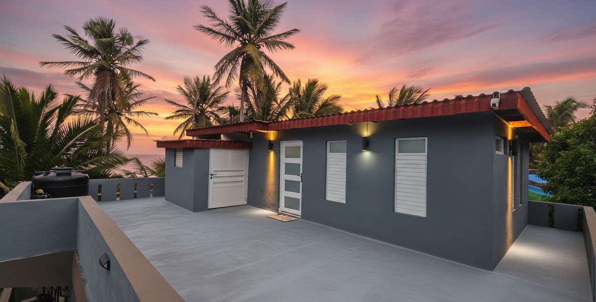 A colorful vibrant retreat w/ beautiful views of the Atlantic and lush green mountains awaits you, Veomar is a stylish modern with an upscale touch . At Veomar "Casita Axel " we've created a home that embraces the beauty of the natural environment that surrounds it while providing a modern, stylish space that welcomes guests to make themselves right at home. The outdoor space houses an infinity pool, In addition there’s a sunken fire pit great for a night cap and to view the stars up above.