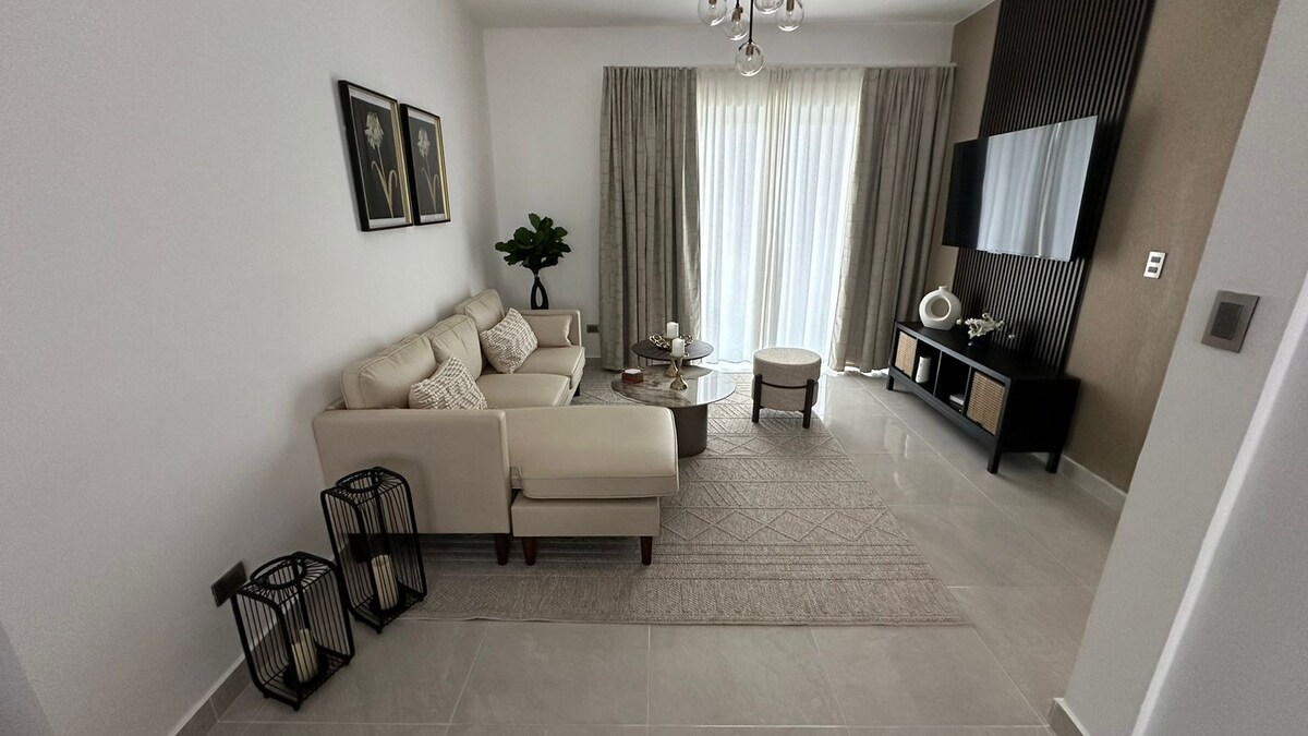 Welcome and relax in our brand new, stylish apartment, located in the Quiet Residential María, in the hart of Cabrera. Apartment is the top floor of the property. Kitchen is fully equipped. Full size Washer and Dryer in the Laundry Room. Two Bedrooms with queen size bed, Smart TV and Air Conditioner. Two full bath, one next to each bedroom. Dining, Kitchen and Living area has also an air conditioner. Seating space in the front deck and in the patio area. Free Private Parking off the street.