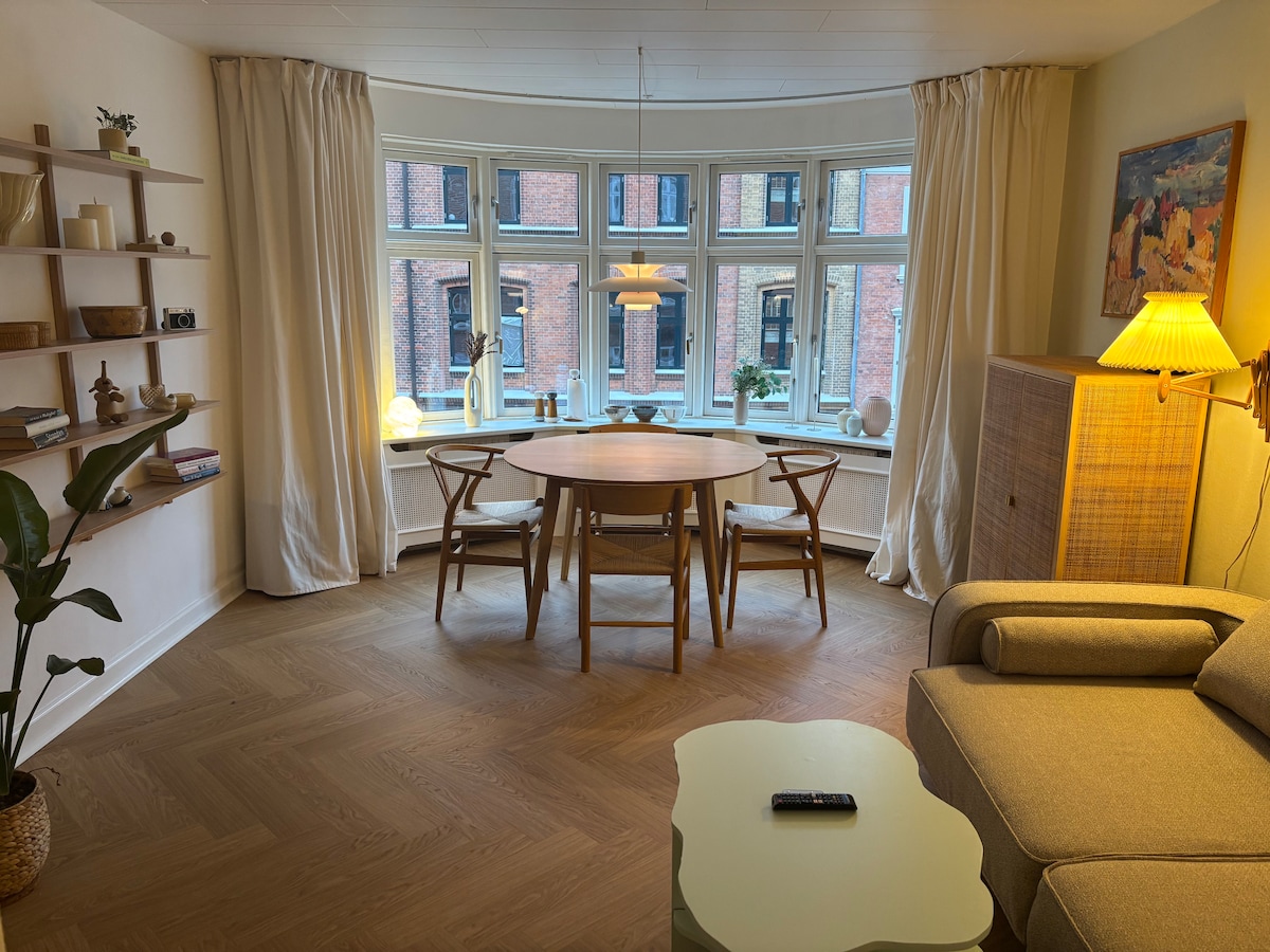 Læn dig tilbage, og slap af i denne rolige og stilfulde bolig. Men din store terrasse og udsigt til have. Lejligheden består af fordelingsgang med adgang til badeværelset og soveværelse med dobbeltseng. Fra soveværelset er der adgang til et soveværelse med enkelt seng. Stue og køkken er i et med adgang til terrasse og have hvor der er orangeri. Hjørnesofaen i stuen kan slået ud til en dobbeltseng. Der er p-plads på ejendommen.