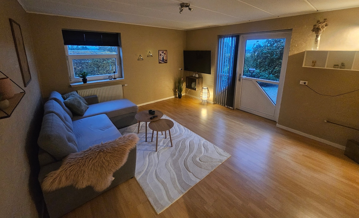 Hyggelig lejlighed på ca. 50 m² med egen indgang, terrasse og parkering. Soveværelse med dobbeltseng, sovesofa til 2 i stuen. Fuldt udstyret køkken med ovn, mikroovn, opvaskemaskine m.m. Spisebord, lænestole og TV med streaming. Stor have med adgang til lystbådehavn, strand, legeplads, shelters, fodboldbane og badebro. Gratis lån af udstyr til aktiviteter om sommeren. Grillbar og ishus.