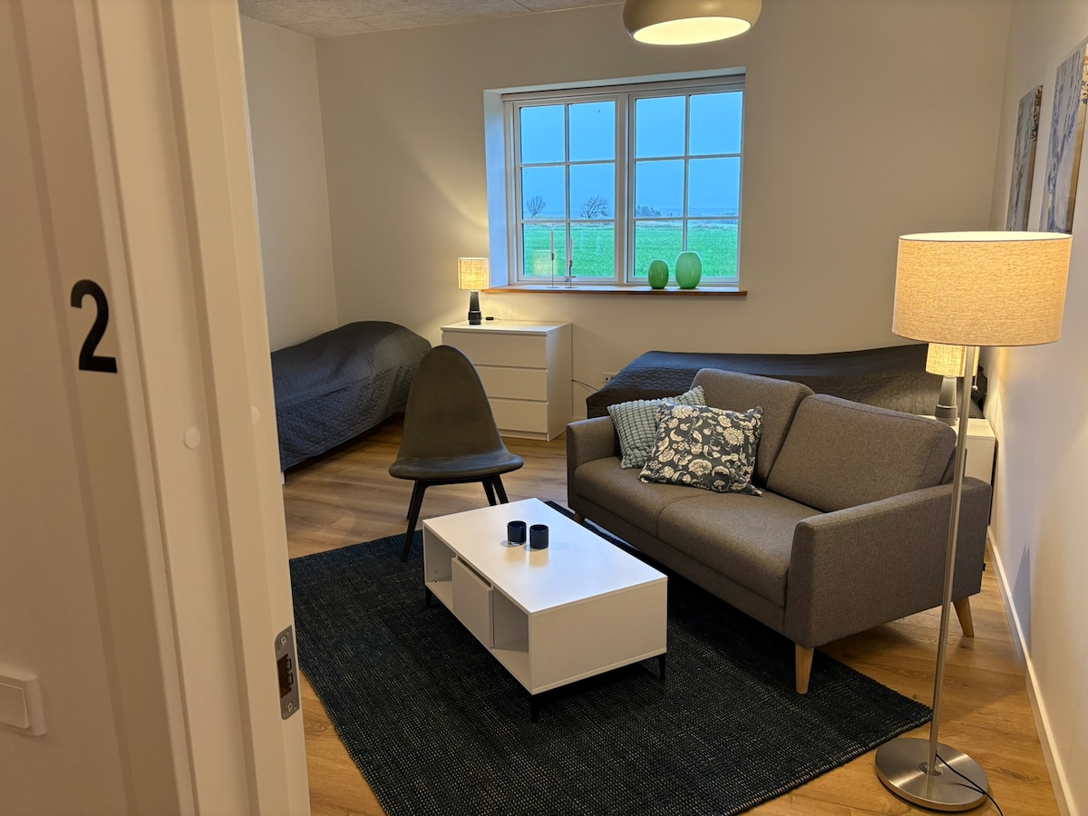 Slap af i denne unikke og rolige bolig. Her er plads til et kortere eller længere ophold midt i naturen. Lejligheden er holdt i en smuk nordisk stil med en hjemlig indretning. Lysets indfald og den grønne natur med marker og træer omkring skaber en særlig stemning, som giver lyst til bare at være.