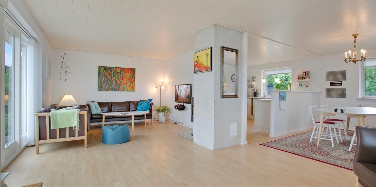 Unik bolig med masser af plads til sjov og ballade. Stor gymnastiksal, legerum og spillerum. Mulighed for mange aktiviteter. Bl.a. floorball, badminton, bordtennis, billard, airhockey, dart og bordfodbold. Skøn have med bålsted, legeplads, trampolin og sydvendt terasse. Forbrug afregnes efter ophold med kr. 4,00 pr. kwt(el) + kr. 4,- pr kg træpiller. Sengelinned og håndklæder skal selv medbringes. Udlejning Fre-søn udtjek kl.15 (søndag) Boligen er beliggende tæt på natur skønne områder.