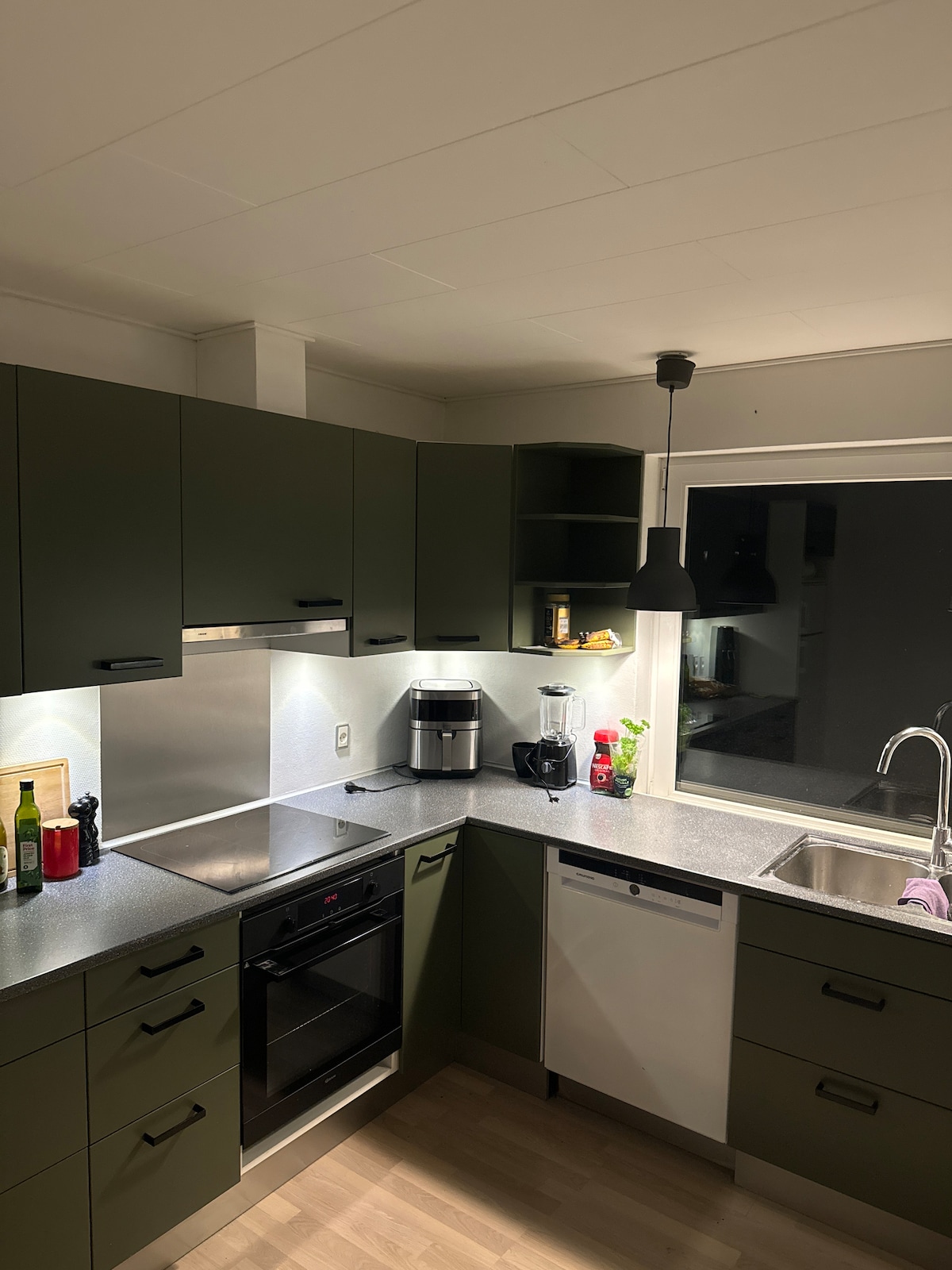 Hel lejlighed med nyt køkken, køl og frys. 2 værelser med plads til 4 voksne og med opredning plads til 6. Er man kun 2 har I rigtig god plads. Der er alt i sengetøj, håndklæder, sæbe, shampoo, kaffe og the. Her er fred og ro, I har en overdækket stor terasse foran bjælkehuset for jer selv. Helt ideelt for et arbejdssjak eller en ferie til familien. Skriv for evt. rabat ved længevarende ophold/arbejdssjak.