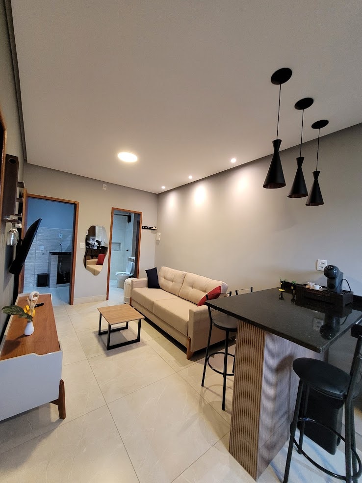 Apartamento conceito aberto no 2º andar, novo, em ambiente aconchegante e com excelente luminosidade natural. Se permita desfrutar deste espaço localizado a poucos kms do centro histórico de Ouro Preto, Mariana e do centro gastronômico de Lavras Novas. Desfrute das belezas históricas, culturais e dos passeios ecológicos na região. Ideal para pessoas e casais que buscam estadia ou moradia de curto ou médio prazo a passeio, viagem, estudo ou trabalho. SEM VAGA DE GARAGEM