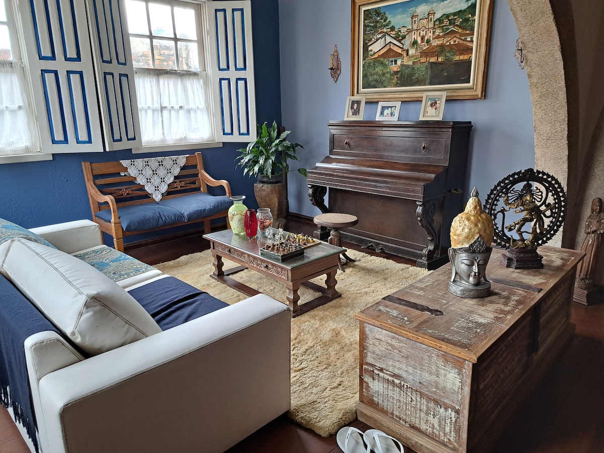 Uma das poucas acomodações em OP servida de ar condicionado e garagem (carro pequeno)! Bem vindo ao nosso refugio vintage, um local encantador para quem deseja vivenciar a história e o charme colonial! Rua plana a 5 minutos a pé da Praça Tiradentes e das principais igrejas barrocas , nossa casa combina atmosfera histórica como conforto moderno, lareira interna, ar condi. Wi-Fi de alta velocidade, Smart Tv, cozinha equipada, roupa de cama de qualidade, cafeteira, estilo e decoração de época.