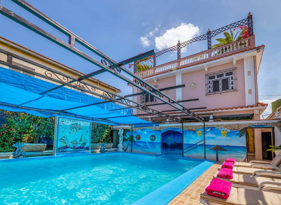 Discover Havana in style in this luxurious house! Enjoy a beautiful covered Patio terrace with a private bar, just for you, where you can prepare your drinks and savor delicious meals outdoors. The house features an indoor garage and air conditioning throughout to ensure your maximum comfort. Ideal for individual travelers, families, and friends, it has 3 spacious bedrooms equipped with comfortable beds. Book now and experience the authentic Cuban hospitality!