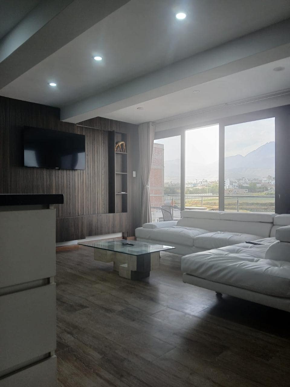 ✨ Depa moderno en el Cercado de Arequipa Alójate en un espacio céntrico y acogedor, con entrada autónoma y seguridad 24/7. El depa ubicado en el 4to piso es ideal para 1–3 personas: cama doble, sofá cama, cocina equipada, comedor, wifi rápido, Smart TV de 75" y agua caliente. En el edificio disfruta de terraza panorámica con vista al Misti (15 pisos) y gimnasio. Cerca de restaurantes, cafés, clínicas, universidades y transporte. Perfecto para descansar o trabajar remoto.